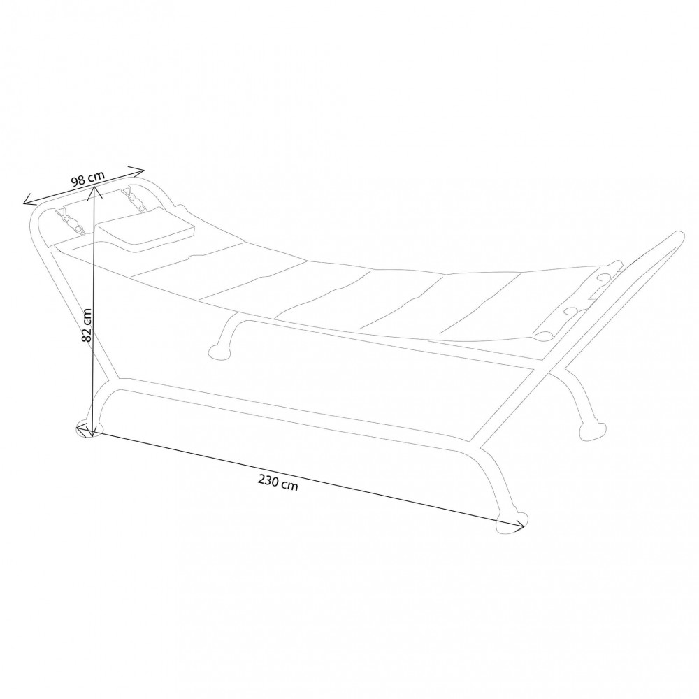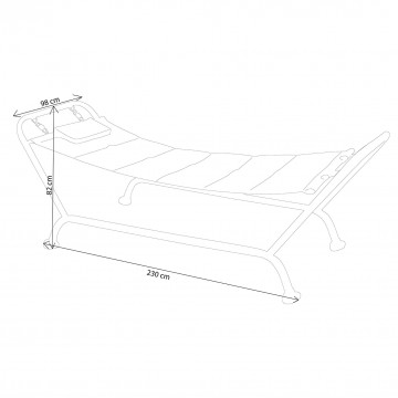 - Dati Tecnici Tubi in metallo Ø 50 mm, Ø 42 mm e Ø 19 mm telo in poliestere e cuscini spessore 5 cm Dimensioni: cm 230 x 98 x 82 h