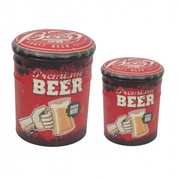 SET DI 2 POUF CONTENITORE TONDO BIRRA ROSSO E NERO