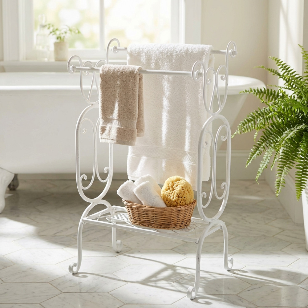 Portasciugamani in metallo verniciato a polvere color BIANCO trattamento elettroforesi Dimensioni: cm 37 x 33 x 90 h