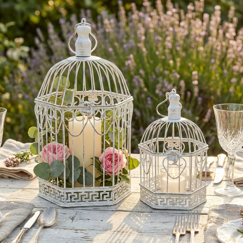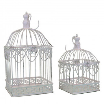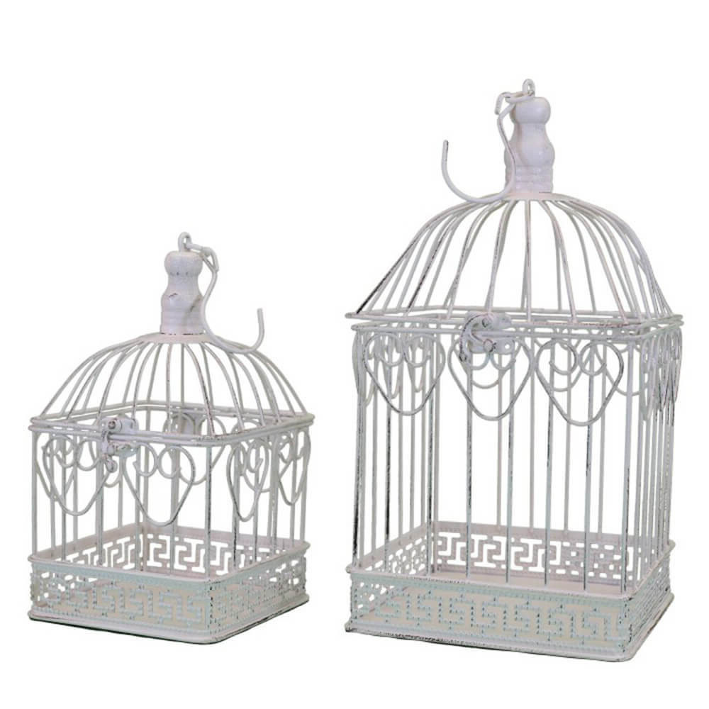 Set di 2 gabbie in metallo verniciate a polvere color BIANCO trattamento elettroforesi Dimensioni: G.18,5x19x42/P.14,5x15x35