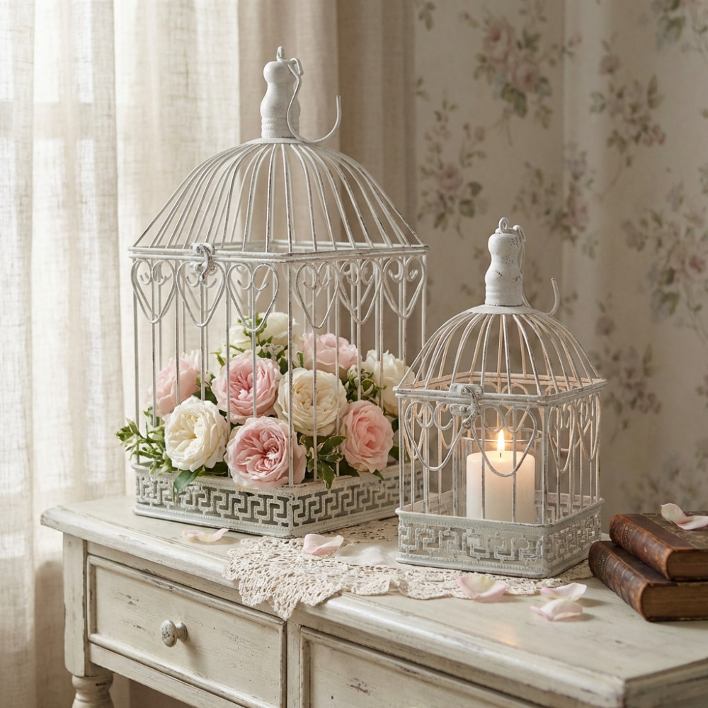 SET DI 2 GABBIE NATALIE RETTANGOLARI BIANCO ANTICO