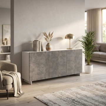 CREDENZA CARLILE BIANCO E GRIGIO EFFETTO CEMENTO