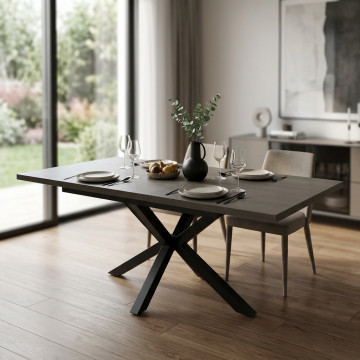 TAVOLO ALLUNGABILE GARFIELD ANTRACITE EFFETTO LEGNO STRUTTURA NERA 160/200 X 90