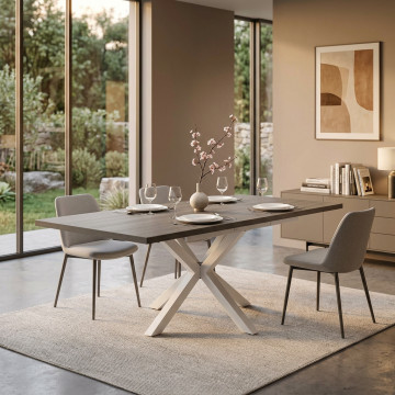 TAVOLO ALLUNGABILE GARFIELD ANTRACITE EFFETTO LEGNO STRUTTURA BIANCA 160/200 X 90