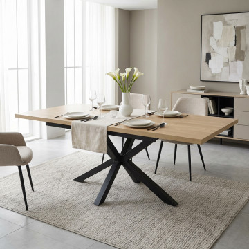 TAVOLO ALLUNGABILE GARFIELD NATURALE CON VENATURE STRUTTURA NERA 160/200 X 90