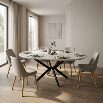 TAVOLO ROTONDO ALLUNGABILE GARRY BIANCO EFFETTO LEGNO STRUTTURA NERA 120/160 X 120