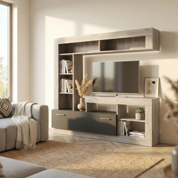 PARETE SOGGIORNO LEONARD ANTRACITE E QUERCIA CHIARO