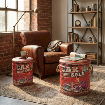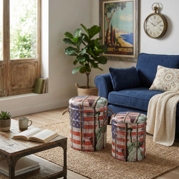 SET DI 2 POUF CONTENITORE TONDO USA