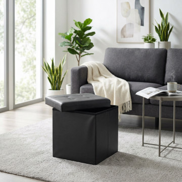POUF CONTENITORE QUADRATO IN ECOPELLE NERO