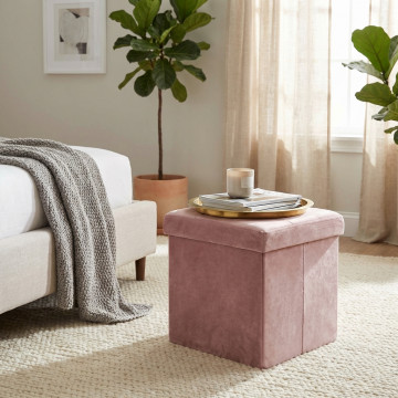 POUF CONTENITORE QUADRATO IN VELLUTO ROSA