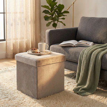 POUF CONTENITORE QUADRATO IN VELLUTO BEIGE
