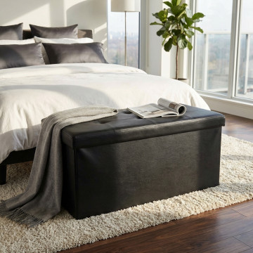 POUF CONTENITORE RETTANGOLARE IN ECOPELLE NERO