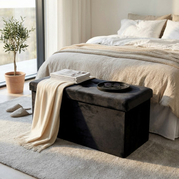 POUF CONTENITORE RETTANGOLARE IN VELLUTO NERO