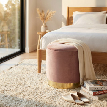 POUF CONTENITORE ROTONDO IN VELLUTO ROSA