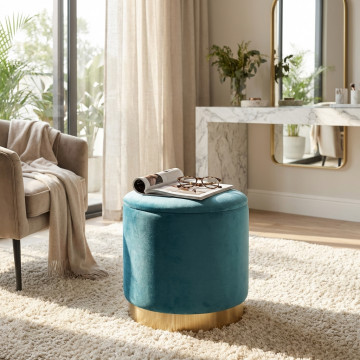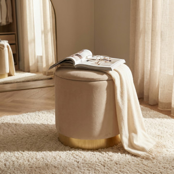 POUF CONTENITORE ROTONDO IN VELLUTO BEIG