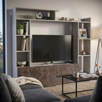 PARETE SOGGIORNO ENTRY GRIGIO EFFETTO CEMENTO E GRIGIO SCURO EFFETTO CEMENTO