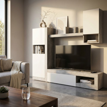 PARETE SOGGIORNO ROOMY BIANCO E GRIGIO EFFETTO CEMENTO