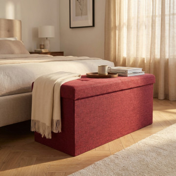 POUF CONTENITORE RETTANGOLARE IN STOFFA BORDEAUX