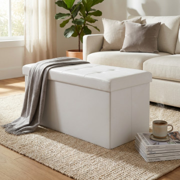 POUF CONTENITORE RETTANGOLARE IN ECOPELLE BIANCO