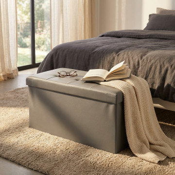POUF CONTENITORE RETTANGOLARE IN ECOPELLE NATURALE