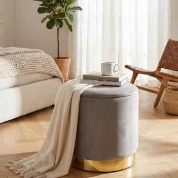 POUF CONTENITORE ROTONDO IN VELLUTO BEIG