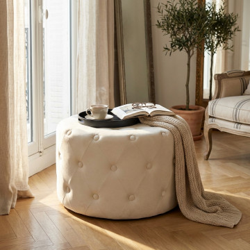 POUF ROTONDO IN VELLUTO BEIG