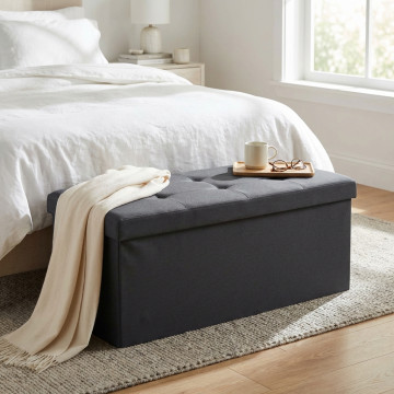 POUF CONTENITORE RETTANGOLARE IN STOFFA GRIGIO SCURO