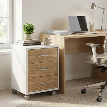 ADB733NSOS MOBILE 3 CASSETTI SU RUOTE NOCE STELVIO E OSSIDO BIANCO