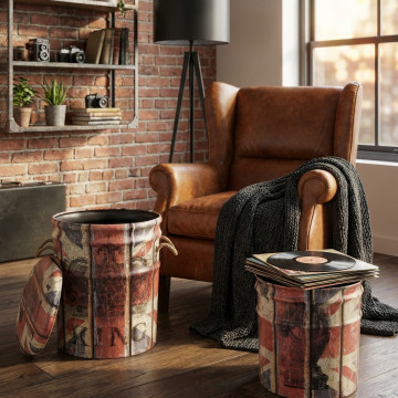 SET DI 2 POUF CONTENITORE TONDO TORRE EIFFEL
